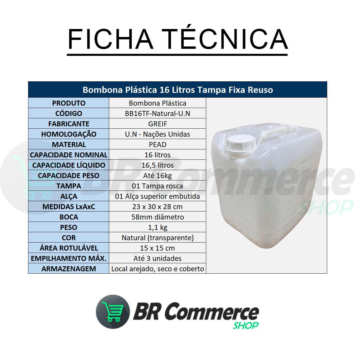 – Bombona Plástica 16 Litros Tampa Rosca Fixa Multiuso Atóxico
